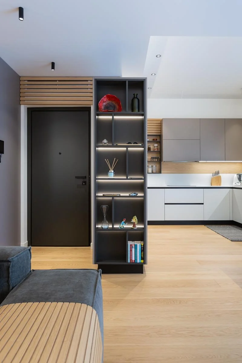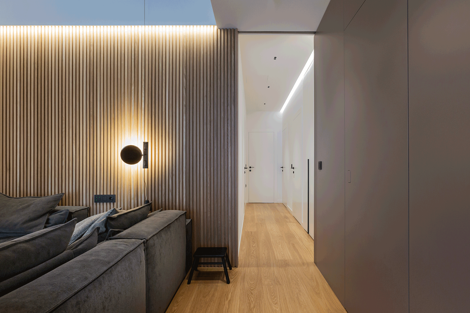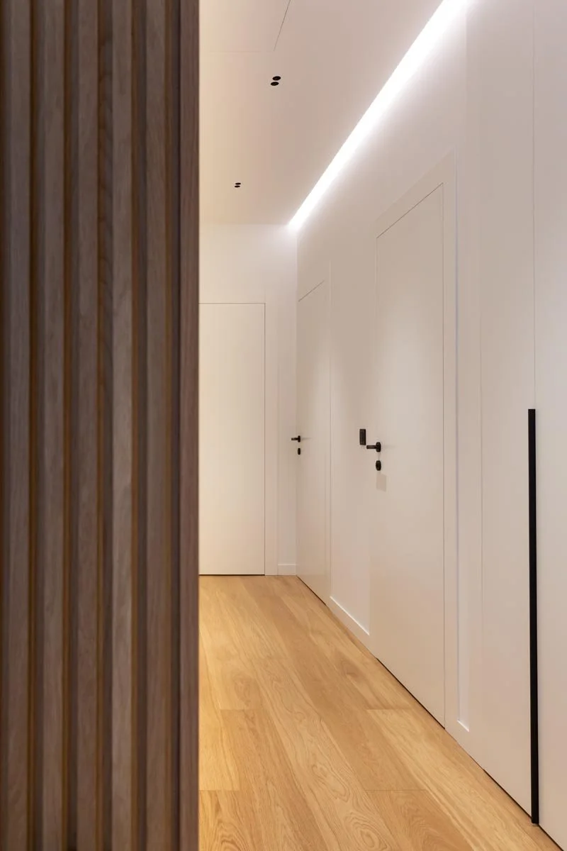 Internally, on the first floor of the house, all the interior masonry and floors were removed. After the stryctural reinforcement of the load-bearing organism, with carbon fiber, FRPs and glasswire mesh, in columns, beams and old masonry respectively, it was the turn of the correct arrangement of the functions of the house. So the kitchen from the West side, came to the East, where the living room was located, while another toilet was added for guests. All the new masonry was made of dry construction with increased sound insulation and the cooling units were hidden in the ceilings.