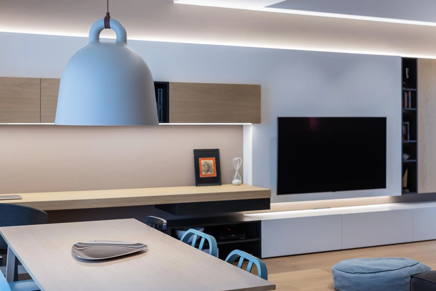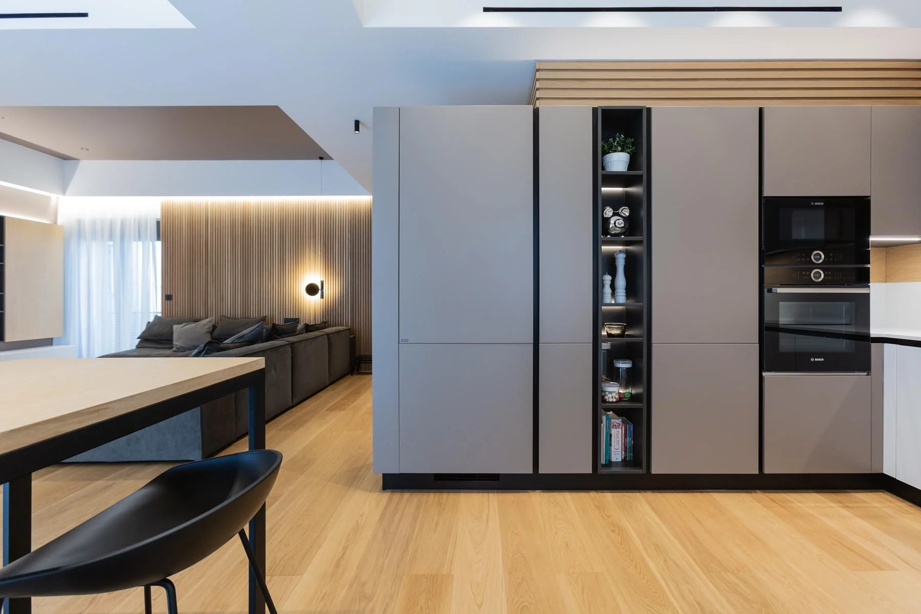 Κυρίως παράγοντας της όλης ανακαίνισης ήταν και η ενεργειακή αναβάθμιση της κατοικίας. Η αντικατάσταση των κουφωμάτων, η εξωτερική θερμοπρόσοψη και η αντεστραμμένη μόνωση στο δώμα, η αντλία θερμότητας σε συνδυασμό με τα fan coil και την ενδοδαπέδια θέρμανση, οι ηλιακοί συλλέκτες και η εγκατάσταση smart home στην ηλεκτρική εγκατάσταση, έκαναν την κατοικία να φτάσει εύκολα την Α ενεργειακή κλάση!